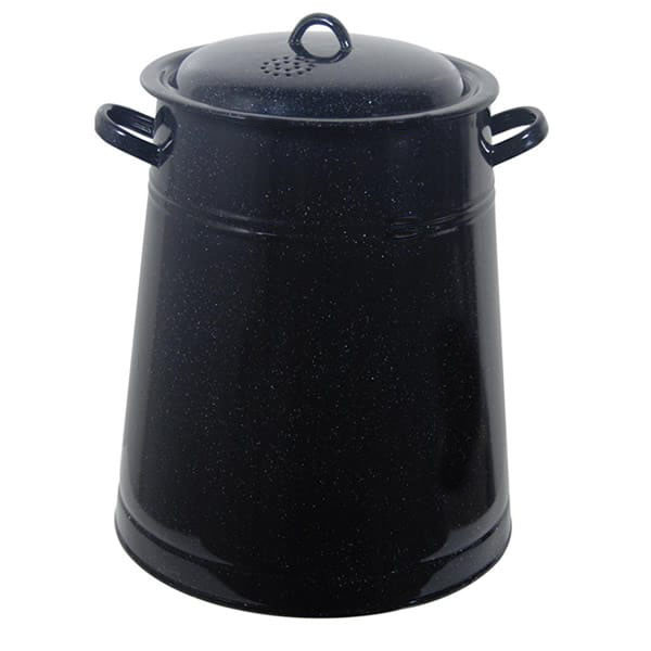 Recipient emailat pentru untură 20 litri negru cu capac – fier emailat pentru depozitarea unturii și a ingredientelor de bucătărie, capacitate foarte mare, mânere pentru manevrare ușoară, curățare simplă cu detergent neutru, produs clasa a II-a.