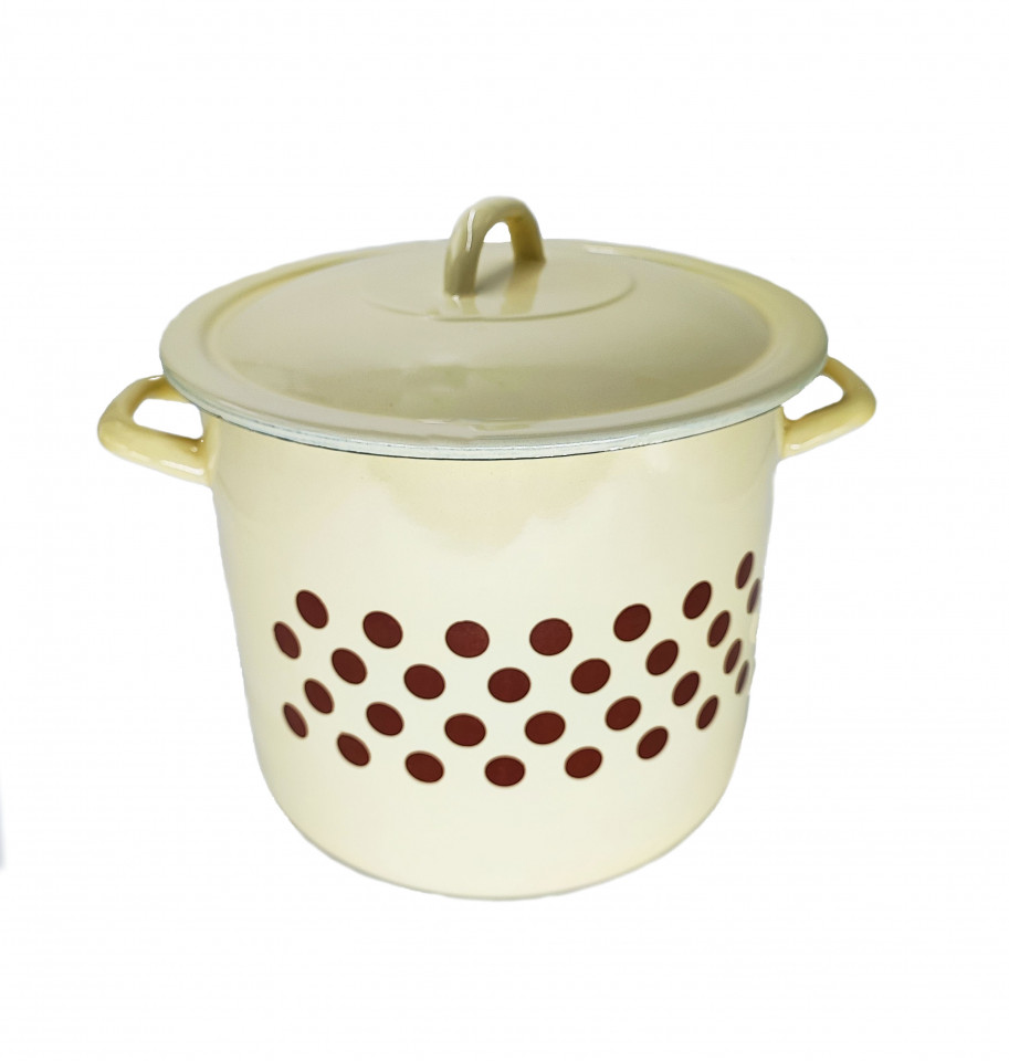 - Produs: Oala emailata 10l bej cu buline cu capac (Categorie: Oale).