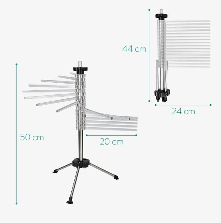 Suportul de tăițe Tacapasta SKU: TP-NEU reprezintă soluția ideală pentru toți pasionații de gătit care doresc să-și îmbunătățească tehnicile de preparare a pastelor. Fabricat dintr-un material rezistent, combinația de poliester și crom conferă acestui produs durabilitate și versatilitate. Este proiectat pentru a permite uscarea uniformă a tăițeilor, având brate demontabile, ce facilitează utilizarea și depozitarea.